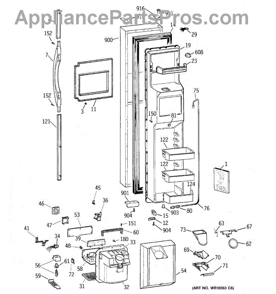 The Door Handle is an OEM part for GE refrigerators. This part provides a secure and comfortable grip for opening and closing the refrigerator door.