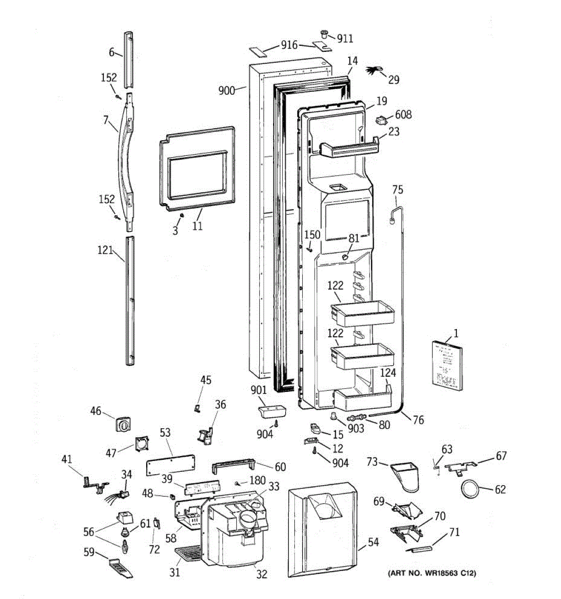 Ice dispenser door assembly seals the ice chute opening on your refrigerator. Replace if cracked, warped, or the rubber gasket is damaged and leaking air.