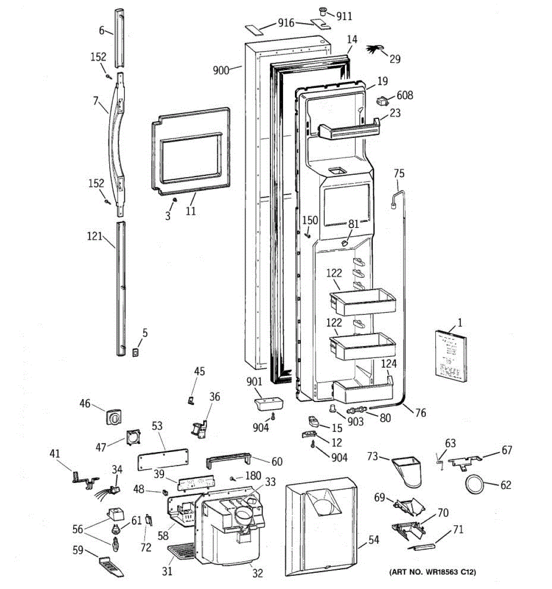 The Door Handle is an OEM part for GE refrigerators. This part provides a secure and comfortable grip for opening and closing the refrigerator door.