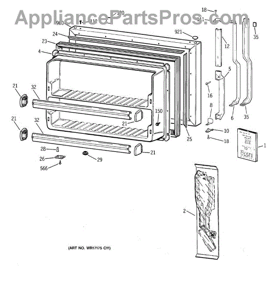 Parts for Ge MTG18GABURWW: 01 - Freezer Door Parts