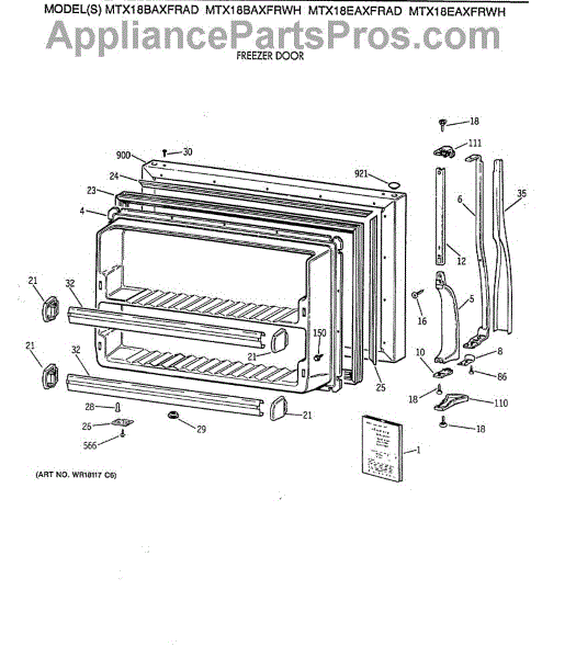 Parts for Ge MTX18BAXFRAD: 01 - Freezer Door Parts