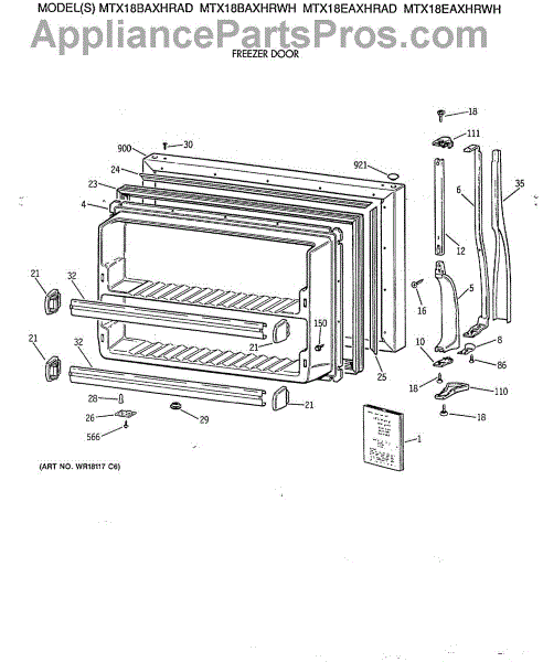 Parts for Ge MTX18BAXHRAD: 01 - Freezer Door Parts