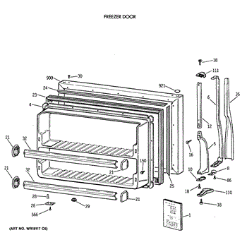 Parts for Ge MTX18EAXARWH: 01 - Freezer Door Parts