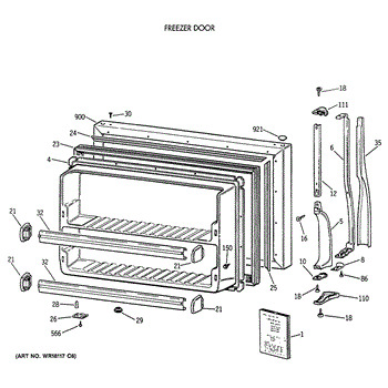 Parts for Ge MTX18EAXERWH: 01 - Freezer Door Parts