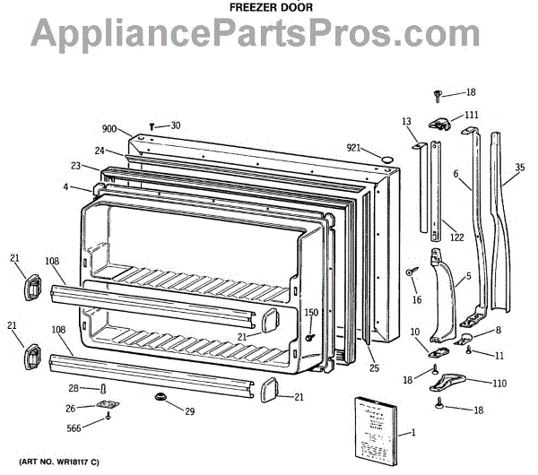 Parts for Ge MTX21EASNRWH: 01 - Freezer Door Parts