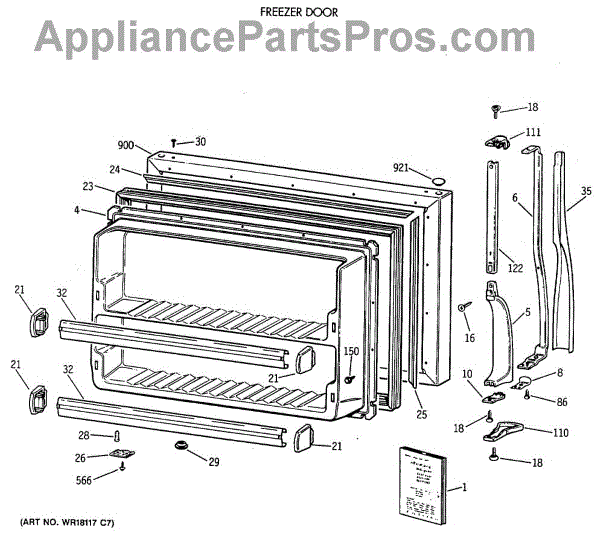 The Freezer Door Gasket is an OEM part for GE refrigerators. This gasket forms a seal around the freezer door, keeping cold air inside and preventing warm air from entering, which helps to maintain the optimal temperature and efficiency of the freezer.