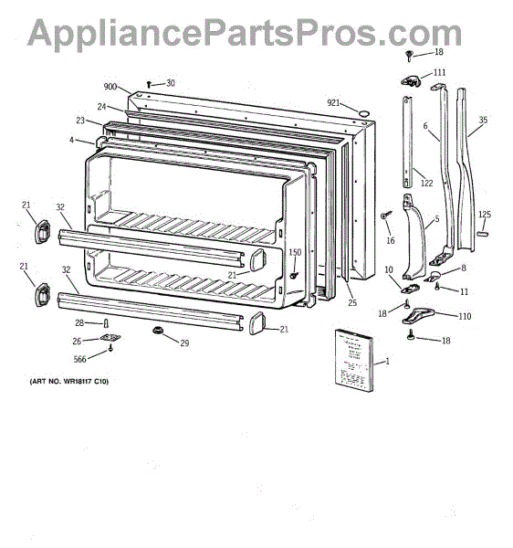 Parts for Ge MTX21EAZBRWW: 01 - Freezer Door Parts