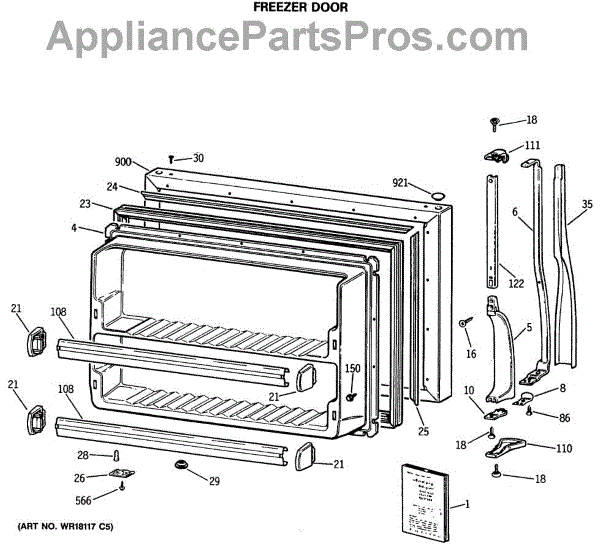 The Freezer Door Gasket is an OEM part for GE refrigerators. This gasket forms a seal around the freezer door, keeping cold air inside and preventing warm air from entering, which helps to maintain the optimal temperature and efficiency of the freezer.
