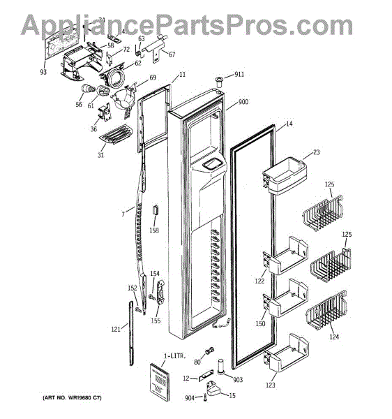 Parts for Ge PCE23NGTIFBB: 01 - Freezer Door Parts