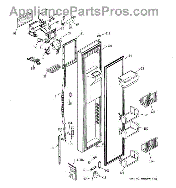 Parts for Ge PCE23NHTJFBB: 01 - Freezer Door Parts