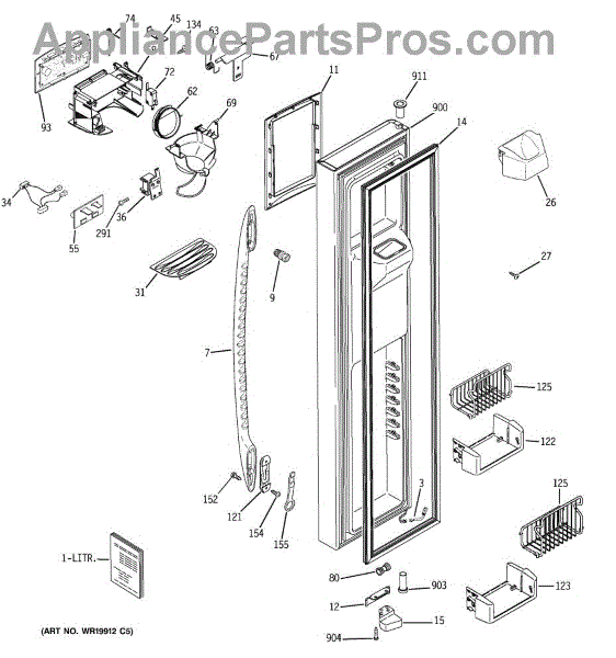 The Door Recess Spring is an OEM replacement part for GE side-by-side refrigerators. It sits within the icemaker door frame to control movement and allow smooth closing/opening of the access point.