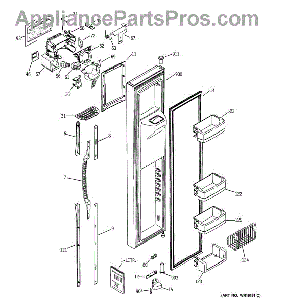The Door Recess Spring is an OEM replacement part for GE side-by-side refrigerators. It sits within the icemaker door frame to control movement and allow smooth closing/opening of the access point.