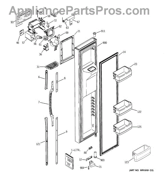 The Ice Door Assembly is an OEM part for GE refrigerators. It is integral to the ice dispenser system, controlling access to the ice chute. This component ensures the efficient delivery of ice cubes or crushed ice when activated and seals off the chute when not in use to maintain the freezer's temperature and prevent frost buildup.