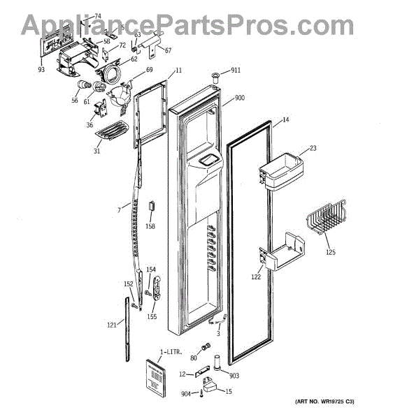 The Ice Door Assembly is an OEM part for GE refrigerators. It is integral to the ice dispenser system, controlling access to the ice chute. This component ensures the efficient delivery of ice cubes or crushed ice when activated and seals off the chute when not in use to maintain the freezer's temperature and prevent frost buildup.
