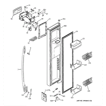 The Door Recess Spring is an OEM replacement part for GE side-by-side refrigerators. It sits within the icemaker door frame to control movement and allow smooth closing/opening of the access point.