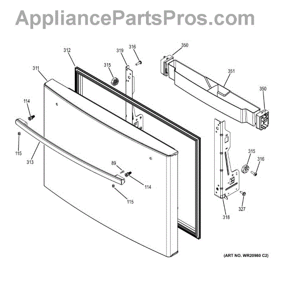 The Fastener Door Handle is an OEM component for GE refrigerators. This door handle provides a comfortable grip for accessing refrigerator shelves and bins. It attaches securely to the refrigerator door through durable metal fasteners.