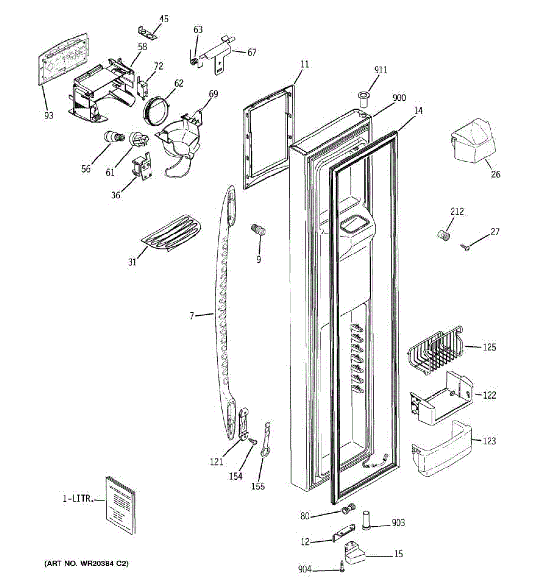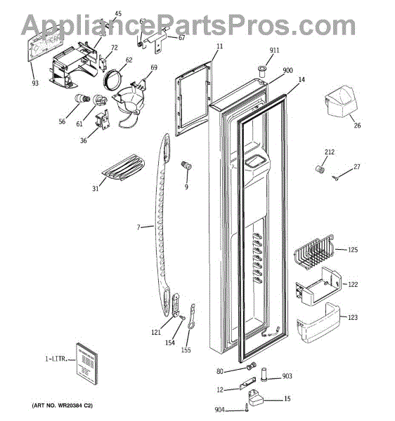 Ice dispenser door assembly seals the ice chute opening on your refrigerator. Replace if cracked, warped, or the rubber gasket is damaged and leaking air.