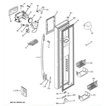 The Refrigerator Dispenser Arm Kit is an OEM component for GE French door refrigerator models. This kit contains the arm mechanism responsible for dispensing ice and water from the external dispenser tap. Proper functioning of the dispenser arm allows for effortless access to ice and water directly from the refrigerator door. Over time, cold temperatures, mineral deposits, and high usage can cause mechanical failure. Symptoms of a problematic refrigerator dispenser arm kit include: