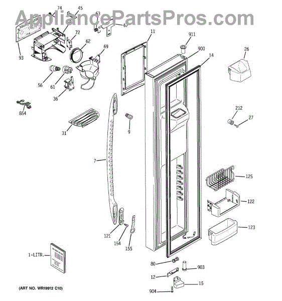 Parts for Ge PHE25PGTJFWW: 01 - Freezer Door Parts