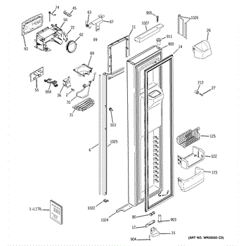The Ice Door Assembly is an OEM part for GE refrigerators. It is integral to the ice dispenser system, controlling access to the ice chute. This component ensures the efficient delivery of ice cubes or crushed ice when activated and seals off the chute when not in use to maintain the freezer's temperature and prevent frost buildup.