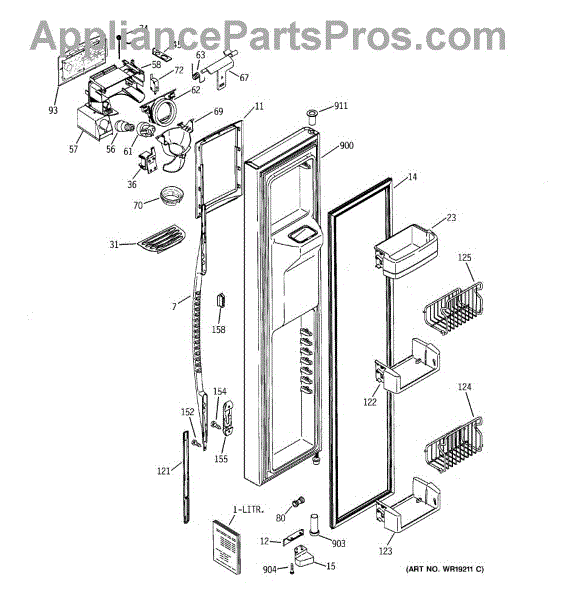 The Ice Door Assembly is an OEM part for GE refrigerators. It is integral to the ice dispenser system, controlling access to the ice chute. This component ensures the efficient delivery of ice cubes or crushed ice when activated and seals off the chute when not in use to maintain the freezer's temperature and prevent frost buildup.