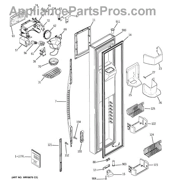 This stop door is the dispenser closure that helps control and seal the ice/water opening so the dispenser stays closed when not in use. It restores proper sealing and prevents drafts or drips from the dispenser area. What it does: