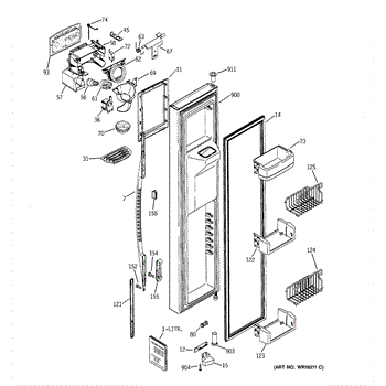 The Door Recess Spring is an OEM replacement part for GE side-by-side refrigerators. It sits within the icemaker door frame to control movement and allow smooth closing/opening of the access point.