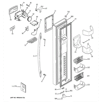 The Door Recess Spring is an OEM replacement part for GE side-by-side refrigerators. It sits within the icemaker door frame to control movement and allow smooth closing/opening of the access point.