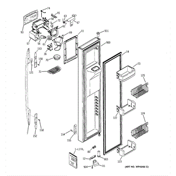The Door Recess Spring is an OEM replacement part for GE side-by-side refrigerators. It sits within the icemaker door frame to control movement and allow smooth closing/opening of the access point.