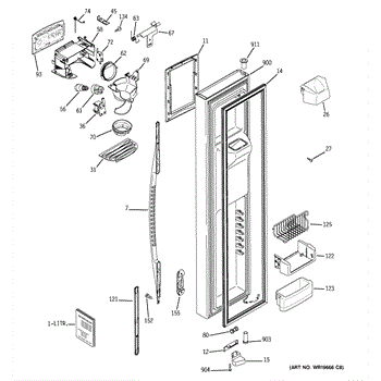 The Door Recess Spring is an OEM replacement part for GE side-by-side refrigerators. It sits within the icemaker door frame to control movement and allow smooth closing/opening of the access point.