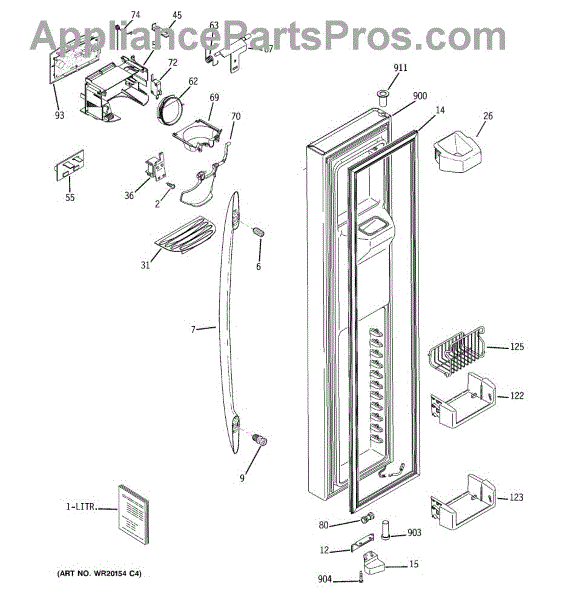 The Door Recess Spring is an OEM replacement part for GE side-by-side refrigerators. It sits within the icemaker door frame to control movement and allow smooth closing/opening of the access point.