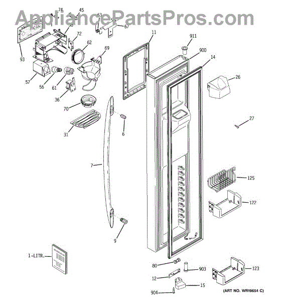 The Door Recess Spring is an OEM replacement part for GE side-by-side refrigerators. It sits within the icemaker door frame to control movement and allow smooth closing/opening of the access point.
