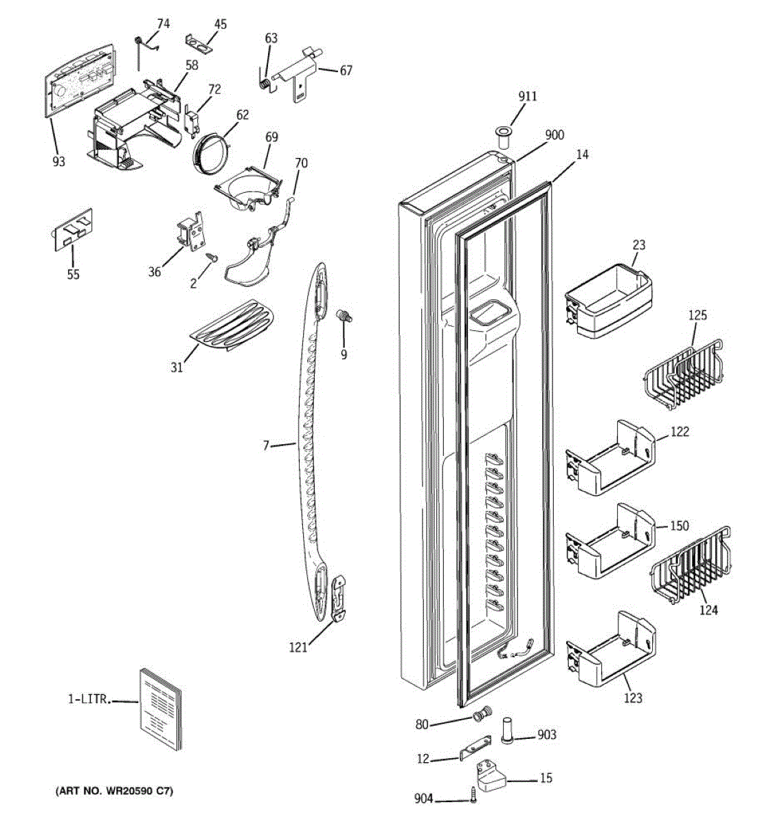 Ice dispenser door assembly seals the ice chute opening on your refrigerator. Replace if cracked, warped, or the rubber gasket is damaged and leaking air.