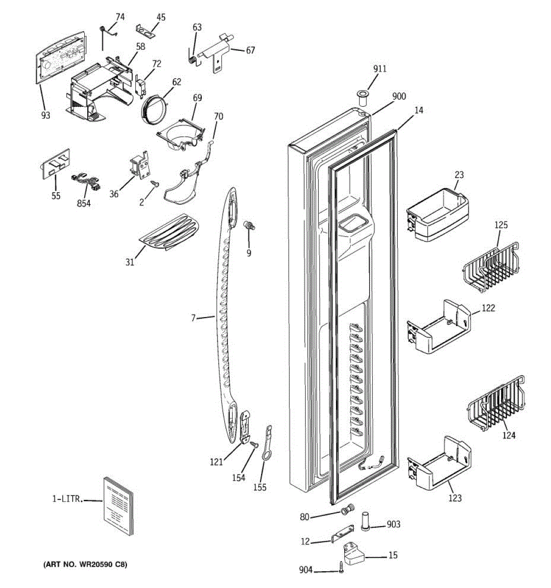 Ice dispenser door assembly seals the ice chute opening on your refrigerator. Replace if cracked, warped, or the rubber gasket is damaged and leaking air.