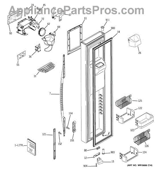 The Ice Door Assembly is an OEM part for GE refrigerators. It is integral to the ice dispenser system, controlling access to the ice chute. This component ensures the efficient delivery of ice cubes or crushed ice when activated and seals off the chute when not in use to maintain the freezer's temperature and prevent frost buildup.