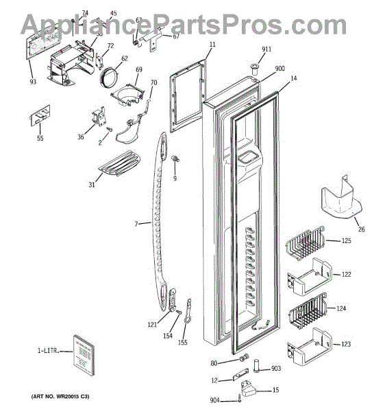 The Ice Door Assembly is an OEM part for GE refrigerators. It is integral to the ice dispenser system, controlling access to the ice chute. This component ensures the efficient delivery of ice cubes or crushed ice when activated and seals off the chute when not in use to maintain the freezer's temperature and prevent frost buildup.