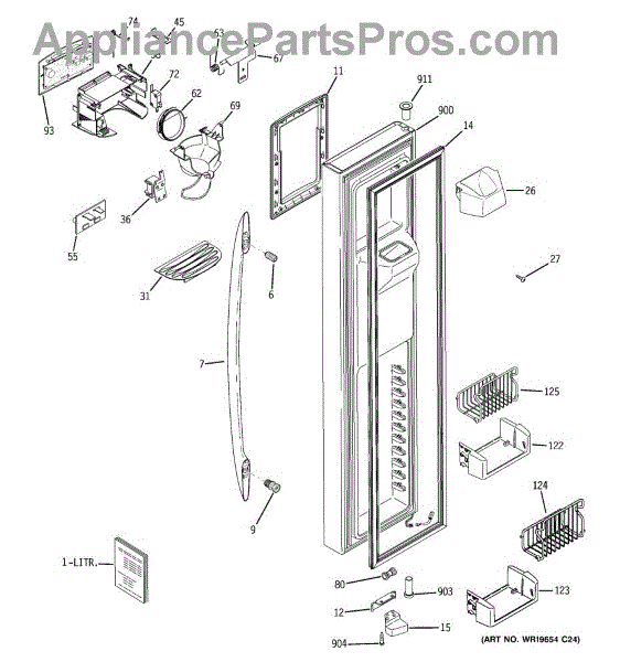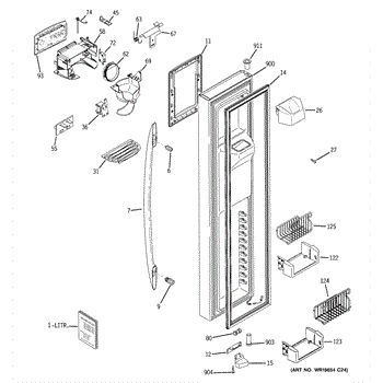 The Door Recess Spring is an OEM replacement part for GE side-by-side refrigerators. It sits within the icemaker door frame to control movement and allow smooth closing/opening of the access point.
