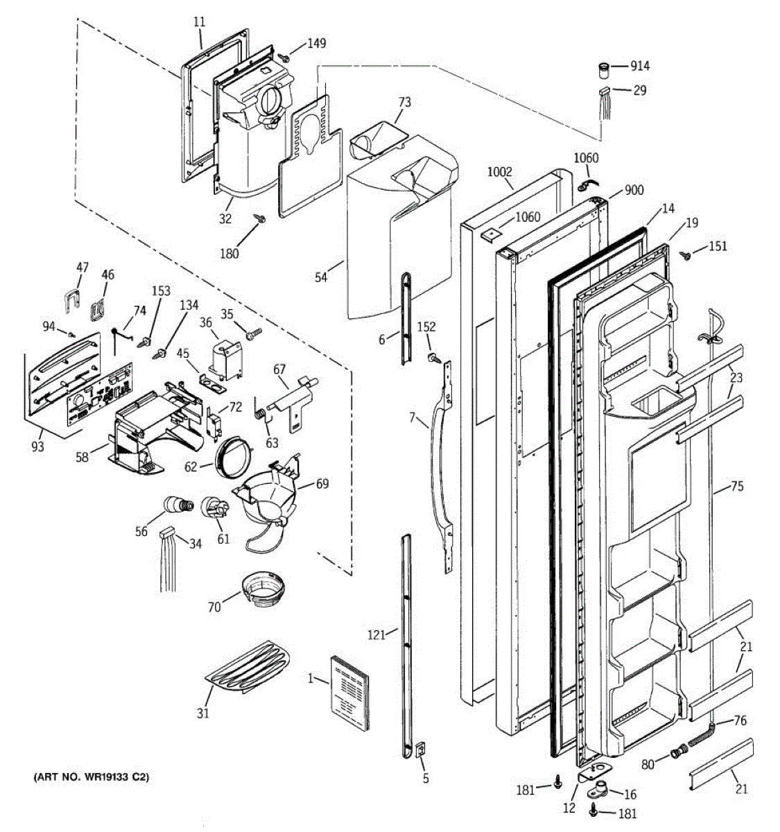 Ice dispenser door assembly seals the ice chute opening on your refrigerator. Replace if cracked, warped, or the rubber gasket is damaged and leaking air.