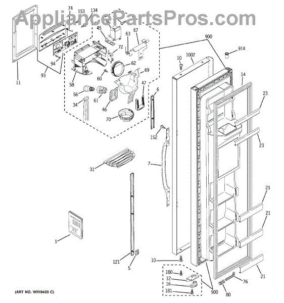 The Dispenser Housing Shield is an OEM part for GE refrigerators. This component plays a crucial role in protecting the internal mechanisms of the water and ice dispenser from damage and contamination. It ensures that the dispenser operates efficiently and maintains hygiene standards by shielding the delicate internal parts from debris and moisture.