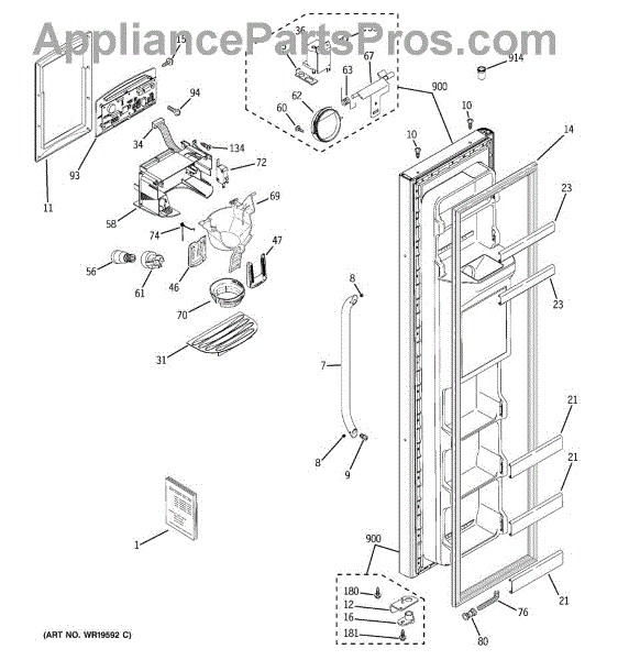 The Dispenser Housing Shield is an OEM part for GE refrigerators. This component plays a crucial role in protecting the internal mechanisms of the water and ice dispenser from damage and contamination. It ensures that the dispenser operates efficiently and maintains hygiene standards by shielding the delicate internal parts from debris and moisture.