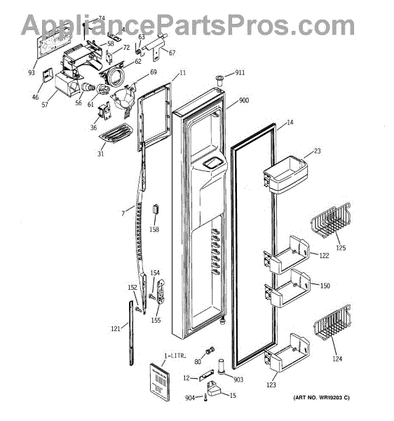 The Dispenser Housing Shield is an OEM part for GE refrigerators. This component plays a crucial role in protecting the internal mechanisms of the water and ice dispenser from damage and contamination. It ensures that the dispenser operates efficiently and maintains hygiene standards by shielding the delicate internal parts from debris and moisture.