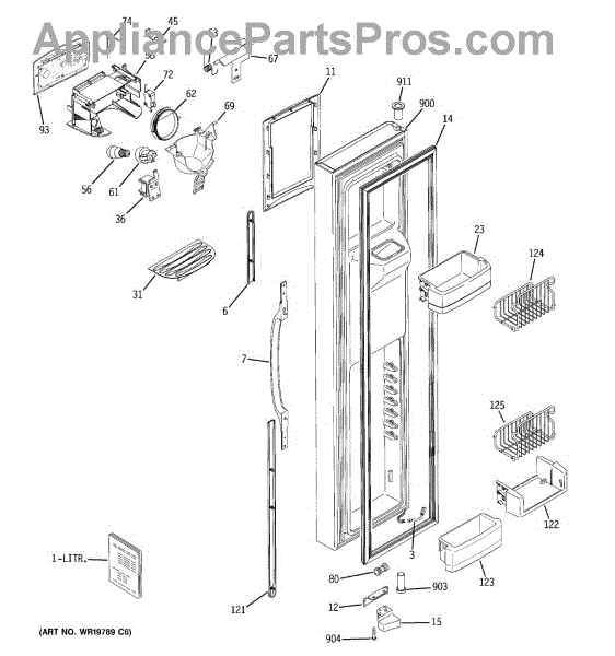 The Ice Door Assembly is an OEM part for GE refrigerators. It is integral to the ice dispenser system, controlling access to the ice chute. This component ensures the efficient delivery of ice cubes or crushed ice when activated and seals off the chute when not in use to maintain the freezer's temperature and prevent frost buildup.