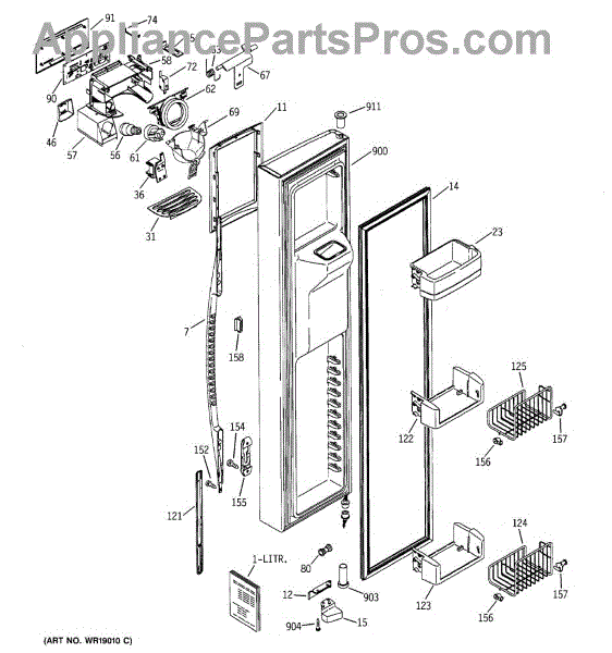 The Ice Door Assembly is an OEM part for GE refrigerators. It is integral to the ice dispenser system, controlling access to the ice chute. This component ensures the efficient delivery of ice cubes or crushed ice when activated and seals off the chute when not in use to maintain the freezer's temperature and prevent frost buildup.