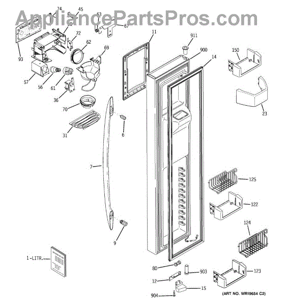 The Door Recess Spring is an OEM replacement part for GE side-by-side refrigerators. It sits within the icemaker door frame to control movement and allow smooth closing/opening of the access point.