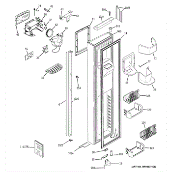 The Ice Door Assembly is an OEM part for GE refrigerators. It is integral to the ice dispenser system, controlling access to the ice chute. This component ensures the efficient delivery of ice cubes or crushed ice when activated and seals off the chute when not in use to maintain the freezer's temperature and prevent frost buildup.