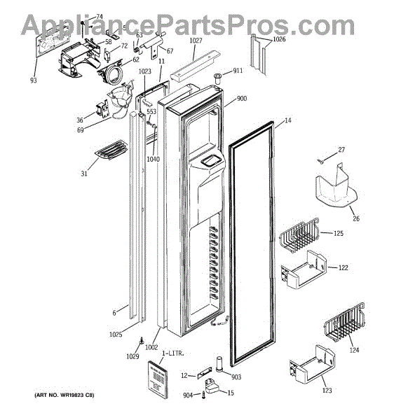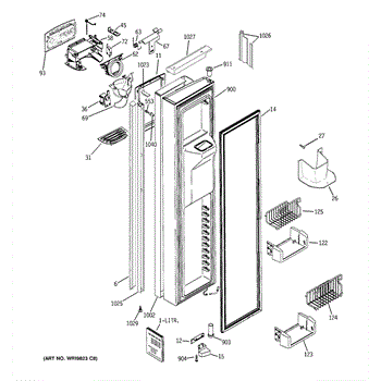 The Ice Door Assembly is an OEM part for GE refrigerators. It is integral to the ice dispenser system, controlling access to the ice chute. This component ensures the efficient delivery of ice cubes or crushed ice when activated and seals off the chute when not in use to maintain the freezer's temperature and prevent frost buildup.