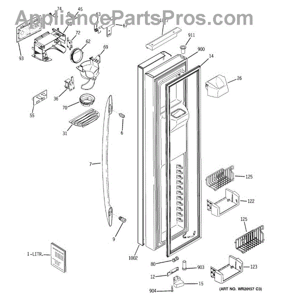 The Ice Door Assembly is an OEM part for GE refrigerators. It is integral to the ice dispenser system, controlling access to the ice chute. This component ensures the efficient delivery of ice cubes or crushed ice when activated and seals off the chute when not in use to maintain the freezer's temperature and prevent frost buildup.