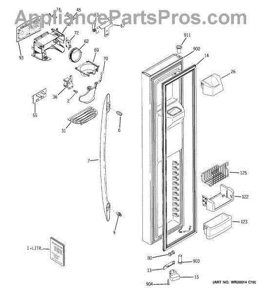 The ice dispenser paddle is the front lever you press with a glass to activate ice dispensing from the freezer door. Replacing a cracked or sticking paddle restores dependable dispensing and keeps the dispenser area looking clean and finished.