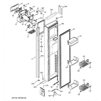 The Ice Door Assembly is an OEM part for GE refrigerators. It is integral to the ice dispenser system, controlling access to the ice chute. This component ensures the efficient delivery of ice cubes or crushed ice when activated and seals off the chute when not in use to maintain the freezer's temperature and prevent frost buildup.