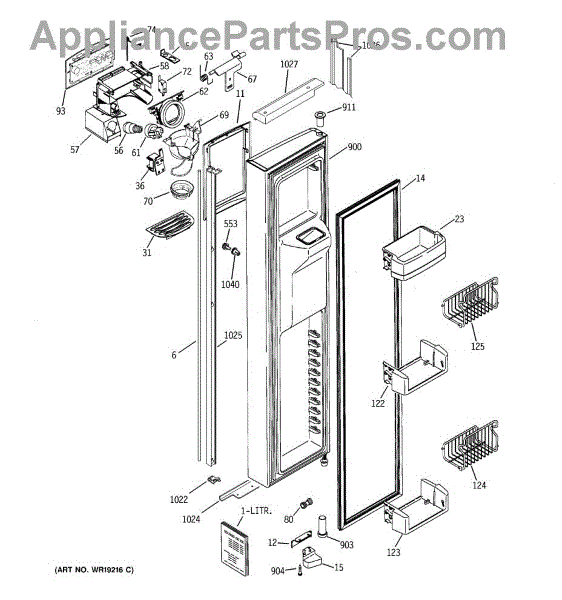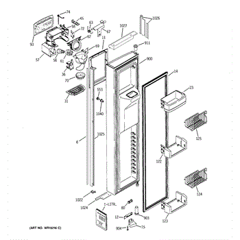 The Ice Door Assembly is an OEM part for GE refrigerators. It is integral to the ice dispenser system, controlling access to the ice chute. This component ensures the efficient delivery of ice cubes or crushed ice when activated and seals off the chute when not in use to maintain the freezer's temperature and prevent frost buildup.